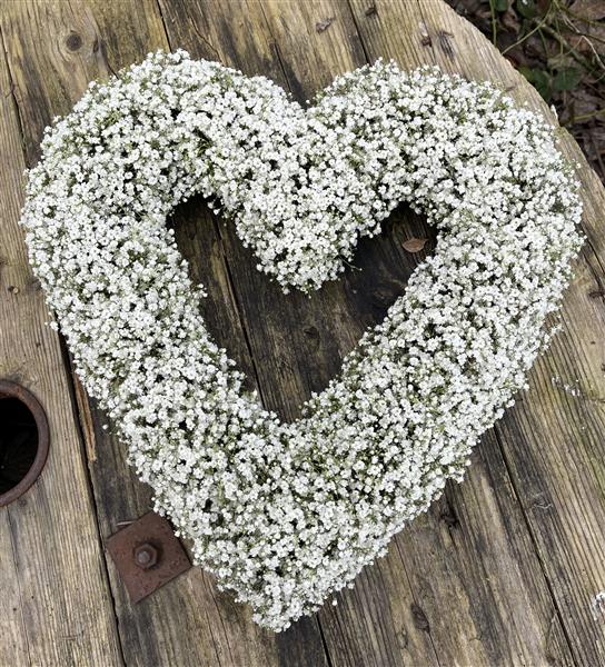A stunning open heart made with beautiful white gypsophila. A stunning tribute for a loved one.