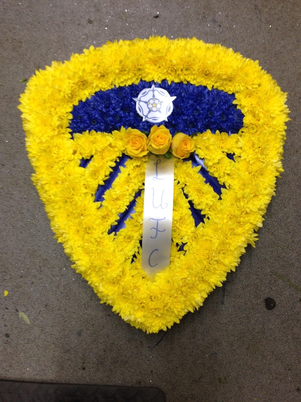 A Leeds United Badge tribute, hand made by our experienced florists.