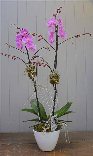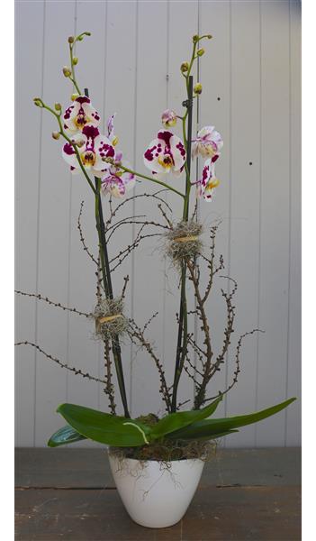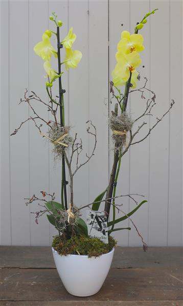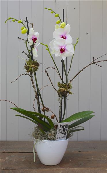A beautiful, large, double stemmed orchid in a ceramic pot. Please pick the colour orchid you would like us to send to your recipient.
