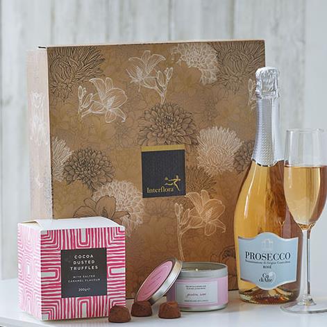 The perfect gift for the perfect night in - prosecco, chocolates and a candle.